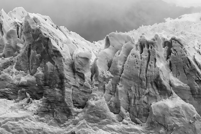 Ver glaciares desde lo alto es estar presente ante inmensos campos de hielo. Paisajes monocromos de acumulación perenne de hielo cristalino, nieve, rocas y sedimentos.