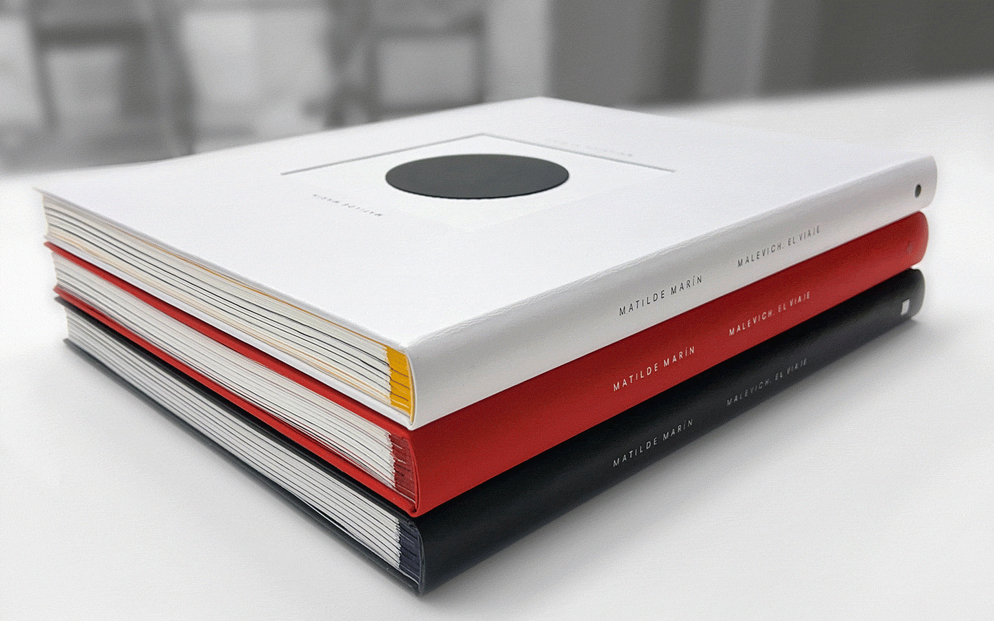 Las ideas y proyectos estéticos de Matilde Marín trascienden siempre el mero ejercicio del arte que, de todas maneras, hace tiempo alcanzó en ella un grado de destreza, un refinamiento indiscutido en la elaboración de imágenes. La serie de diecisiete fotografías intervenidas que hoy Matilde presenta es el producto de una búsqueda y de un descubrimiento multiplicado de las formas suprematistas, más allá de los objetos, sus contornos, colores y funciones, en la vida contemporánea. Nuestra artista percibe en el mundo exterior figuras que disparan sus recuerdos de la pintura de Kasimir Malevich. Toma una foto del lugar y, luego, dibuja, retoca, proyecta sobre la imagen alguna de las formas fundamentales del suprematismo -el cuadrado negro, el círculo negro, el rectángulo alargado, el círculo blanco-, de tal suerte que las vemos liberadas de cualquier atadura a la naturaleza o a la obra previa de los seres humanos, aun allí donde se insertan en un prado, en una arquitectura, en la superficie curva de un puente, en la cubierta de un barco, en un manto de nieve. Se trata de una geometría salida de la mente y del sensorium de Marín, creada en medio del tráfago de un viaje, de un movimiento que los espectadores captamos sin dificultad. Me permito recordar una cita de Malevich que explica el procedimiento, sus propósitos y resultados. Está tomada del texto que Casimir escribió para el catálogo de la Décima muestra estatal: Creación no objetiva y Suprematismo, realizada en Moscú en 1919.